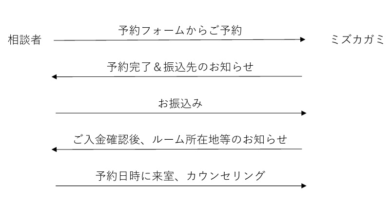 - 相談者さまからのご予約を確認後、振込先をお知らせします。